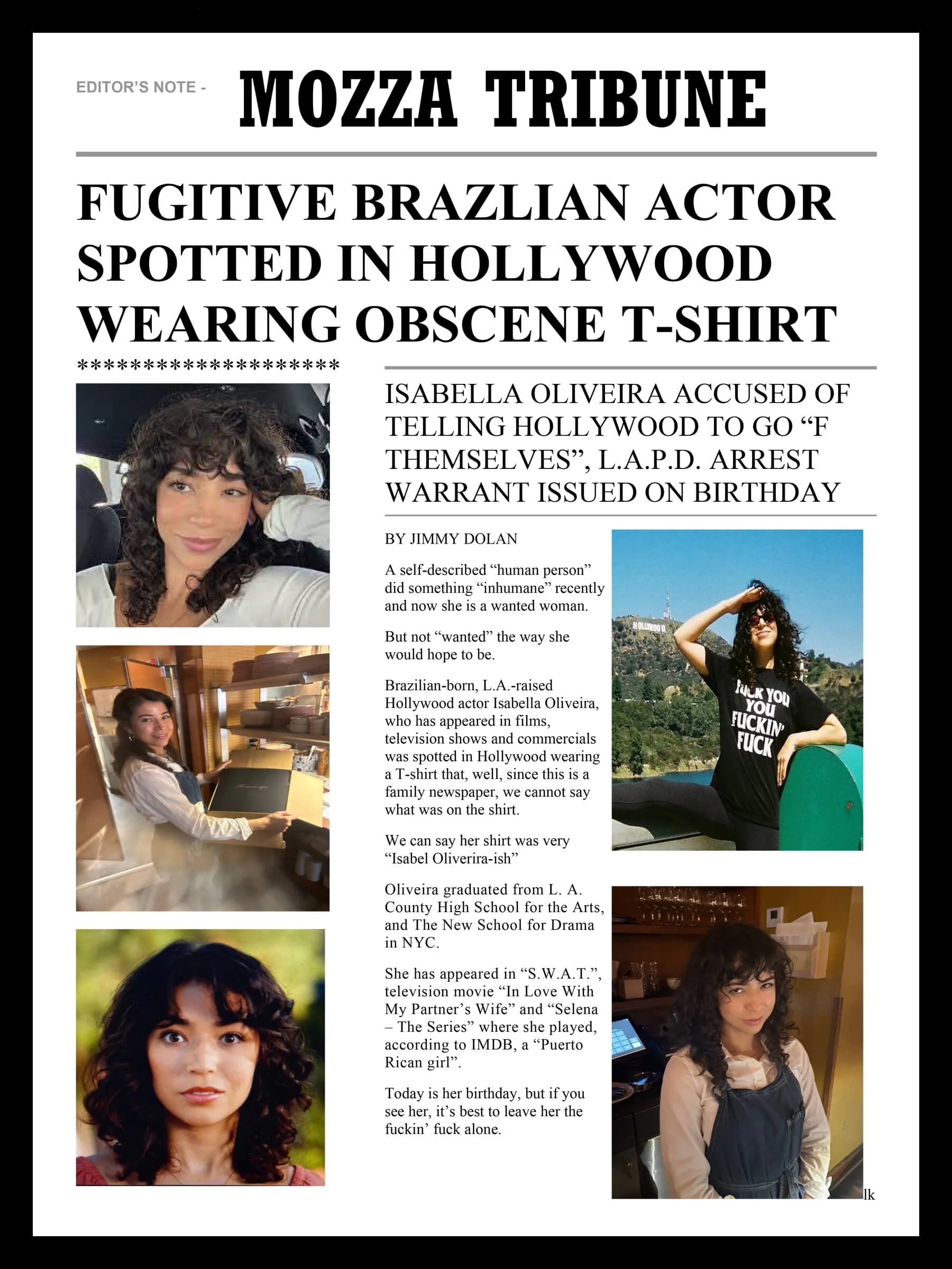 A personalized newspaper story written by a former Los Angeles Times journalist; funny, emotional, and unforgettable.